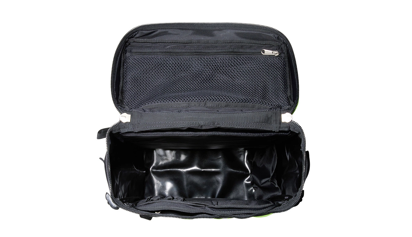 Top lid with large zip pulls provides easy access to the main compartment