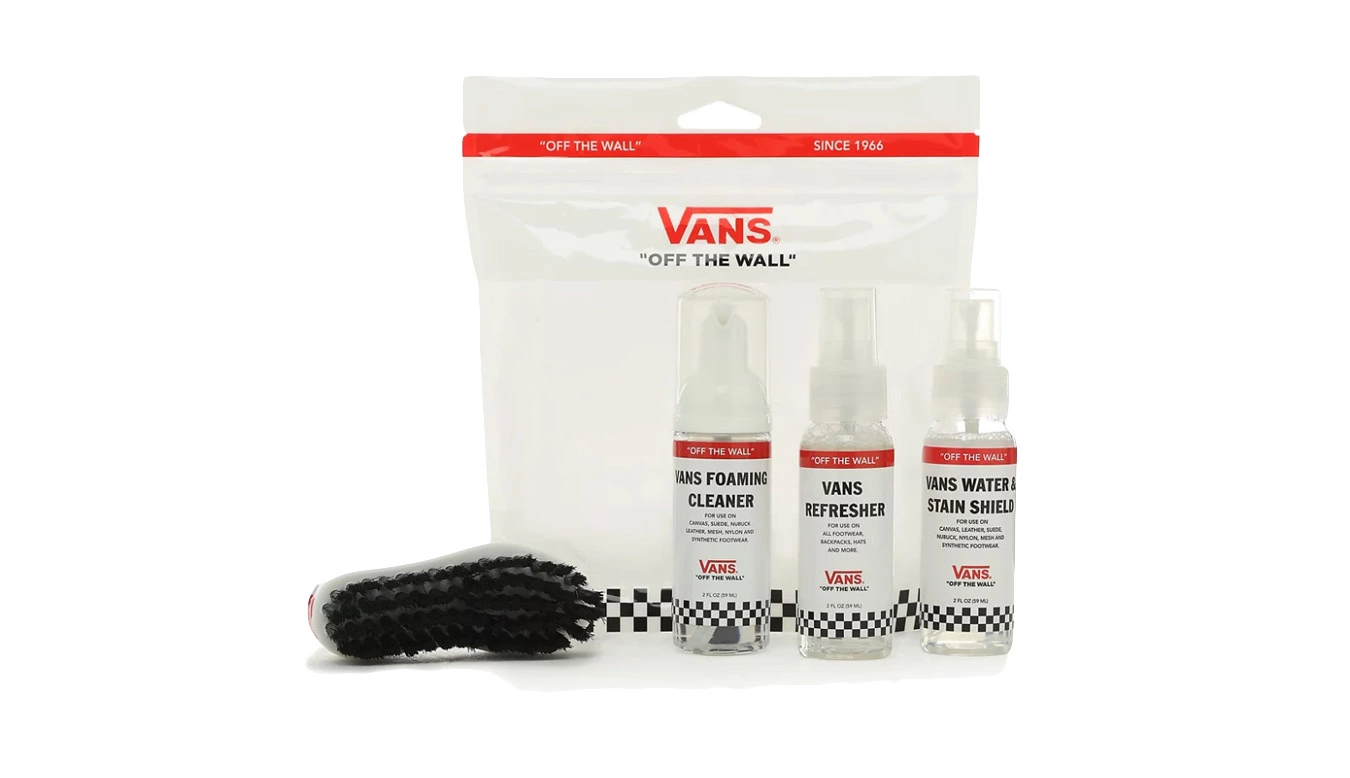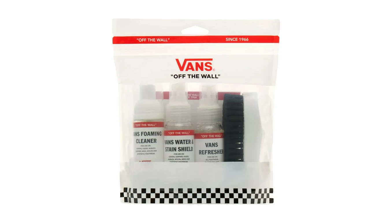 Le kit de voyage d’entretien des chaussures Vans comprend trois versions de voyage des essentiels d’entretien des chaussures Vans dans un sac refermable : le bouclier anti-eau et anti-taches, le nettoyant moussant, le rafraîchisseur et une brosse à chaussures en forme de chaussure Vans. Le Vans Water & Stain Shield est spécialement formulé pour fournir une barrière invisible contre l’humidité et les taches, et est idéal pour les chaussures et accessoires en cuir, daim, nubuck, coton, toile et nylon. Le nettoyant moussant Vans est spécialement formulé pour éliminer la saleté et les taches des chaussures Vans, en gardant vos Vans comme neuves. Il est idéal pour nettoyer les pare-chocs en caoutchouc blanc et peut également être utilisé sur les tiges et les semelles. Le Vans Refresher est formulé pour rafraîchir et désodoriser les chaussures, et est un excellent moyen de garder vos chaussures et accessoires frais. La brosse à chaussures Vans est un moyen sûr et efficace d’éliminer les taches et la saleté. Utilisé avec le nettoyant moussant, il est idéal pour nettoyer les pare-chocs en caoutchouc blanc et peut être utilisé sur les tiges et les semelles.